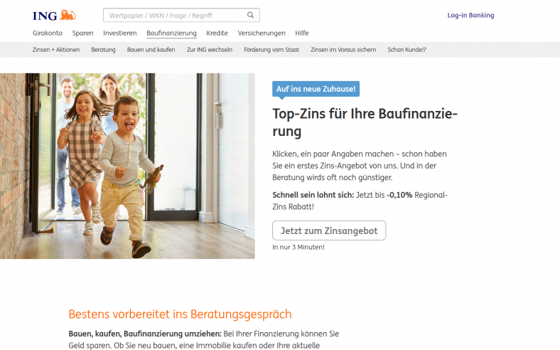 Allein im Bereich der privaten Baufinanzierung finden etwa 60.000 – 70.000 neue Kunden jedes Jahr den Weg zur ING DiBa.